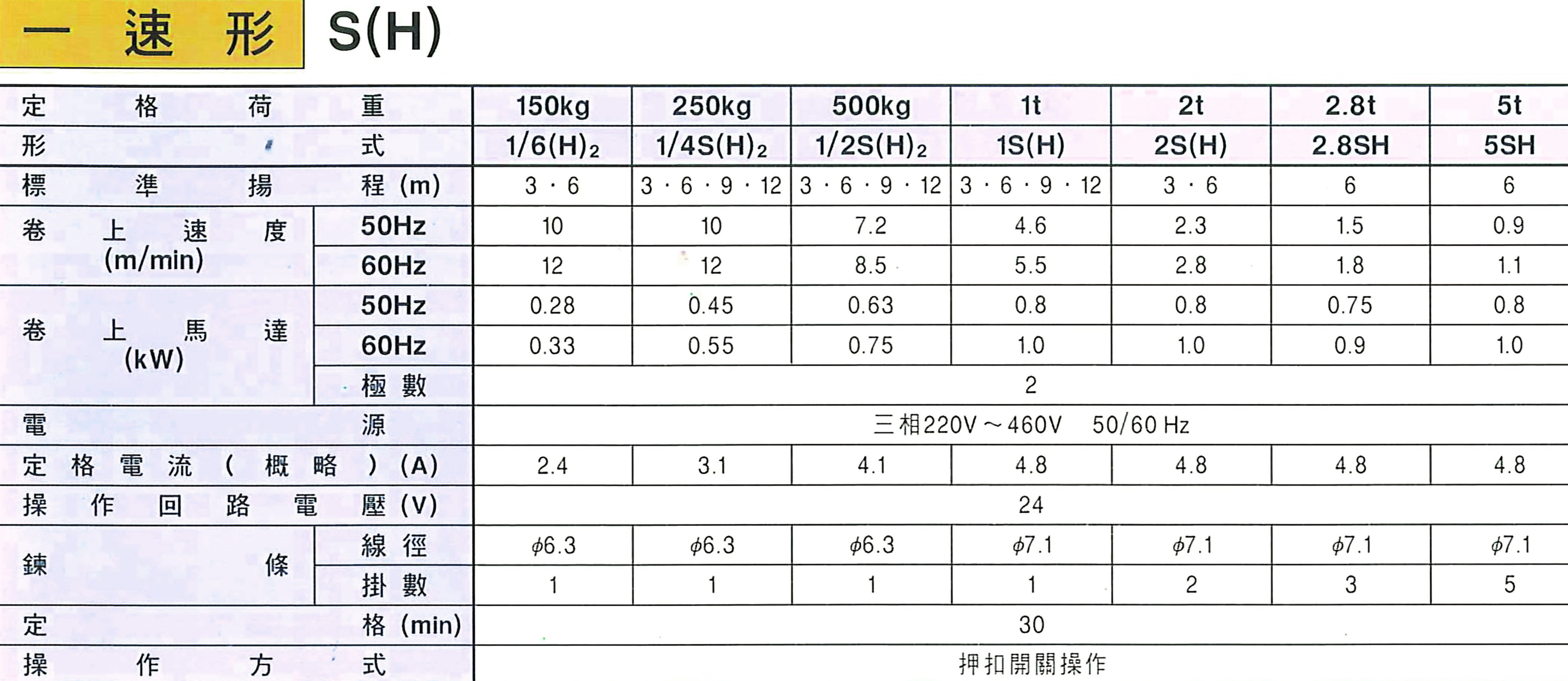 碳刷馬達鍊條吊車CH-300.CH-500.CH-1000